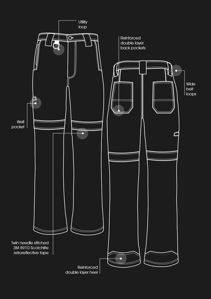 - Twin needle stitched 3M 8910 Scotchlite retroreflective tape